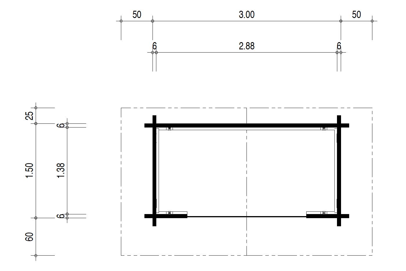 | Dachüberstand: | vorne: 0,60 m seitlich: 0,50 m hinten: 0,25 m |