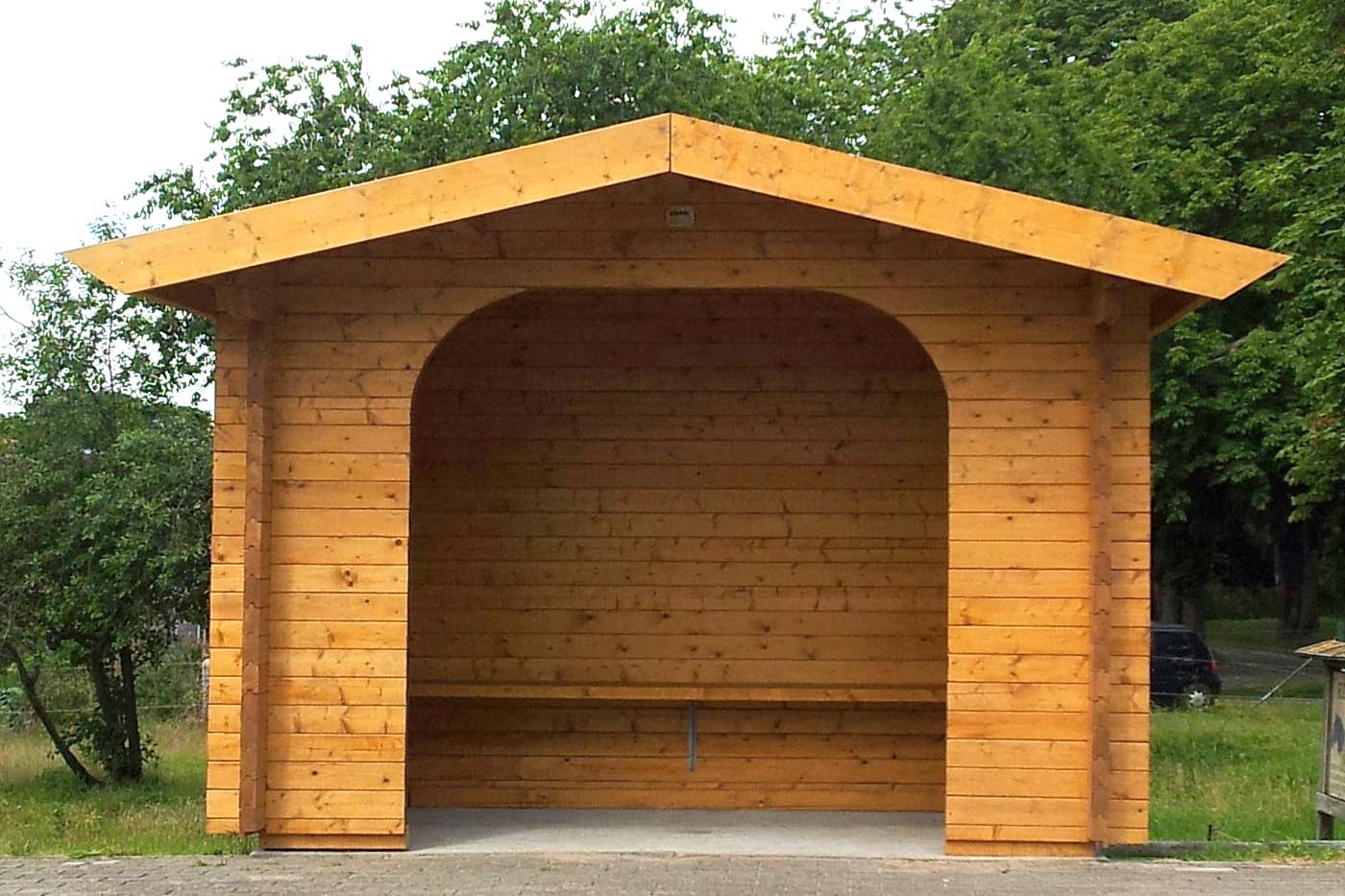 Die Buswartehalle aus hochwertigem Holz wird in ihrer Nutzung auch gerne zweckentfremdet. Speziell als Holzunterstand ist sie ideal geeignet. Auch ein zusätzliches seitliches Schleppdach ist selbstverständlich möglich.